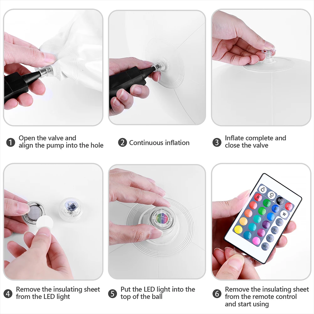 5. and Waterproof: Constructed from sturdy PVC material, the LED glowing balloon is waterproof, tear-resistant, and highly . Suitable for all types of beach and pool activities, it ensures lasting enjoyment and adds a magical touch to your summer festivities.